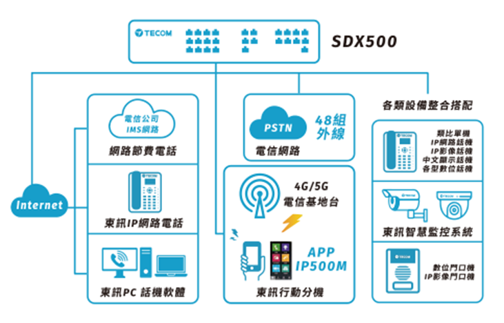 東訊IP SDX500 行動總機系統整合行動網、IP網、固網及影像通訊,是最具經濟效益的IP行動總機系統,無論